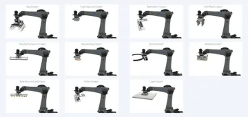 O End-of-Arm Tooling (EOAT) para robôs de 6 eixos é um dispositivo especializado projetado para precisão e eficiência em ambientes industriais e de fabricação. Esta ferramenta permite uma série de funções, como inserir blindagens, machos e inserções em moldes, bem como recuperar peças acabadas, tudo isso seguindo as instruções do operador. Os principais recursos deste EOAT incluem a capacidade de realizar múltiplas operações com um único braço, garra a vácuo para manuseio